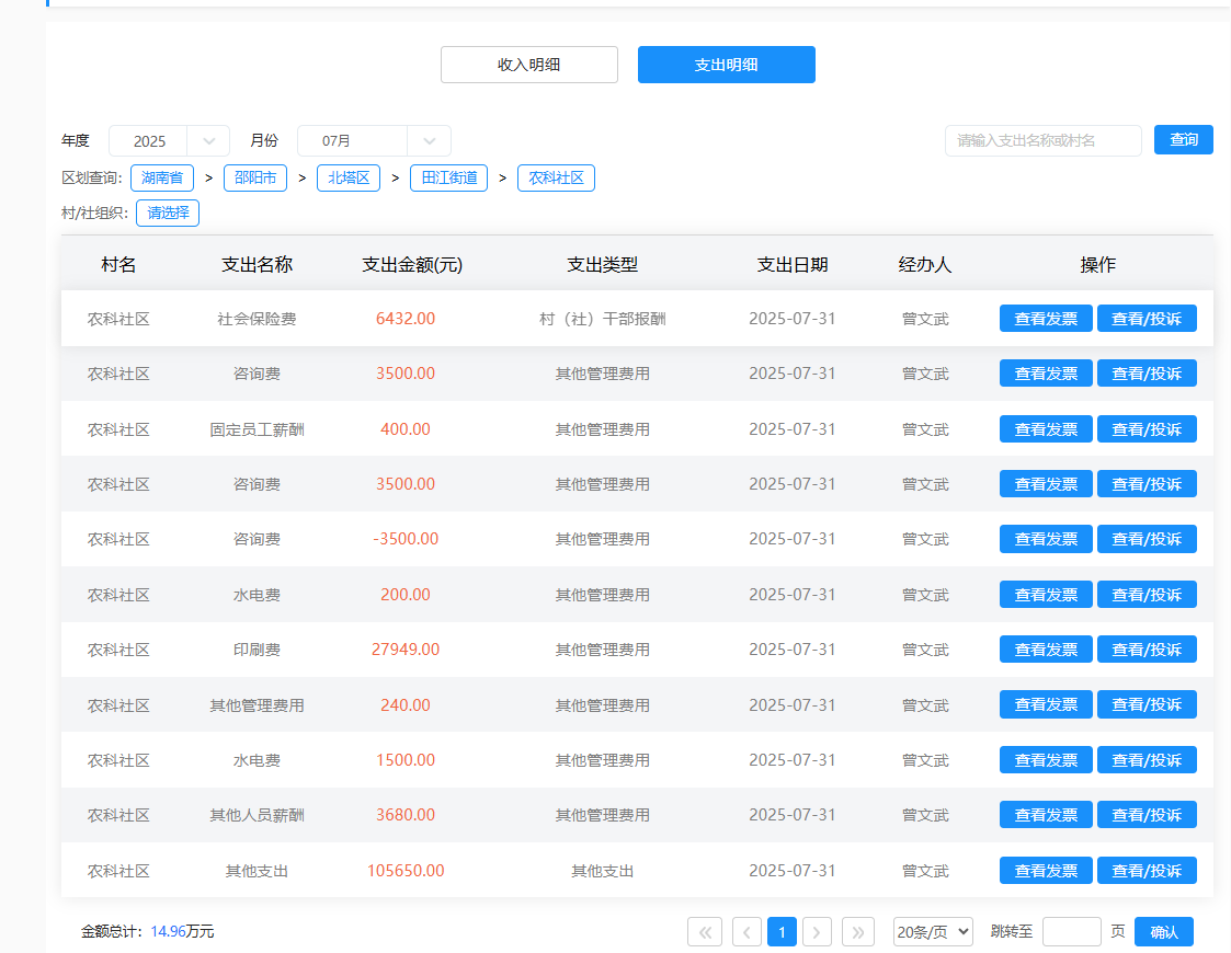 2025年7月农科社区村级财务支出明细