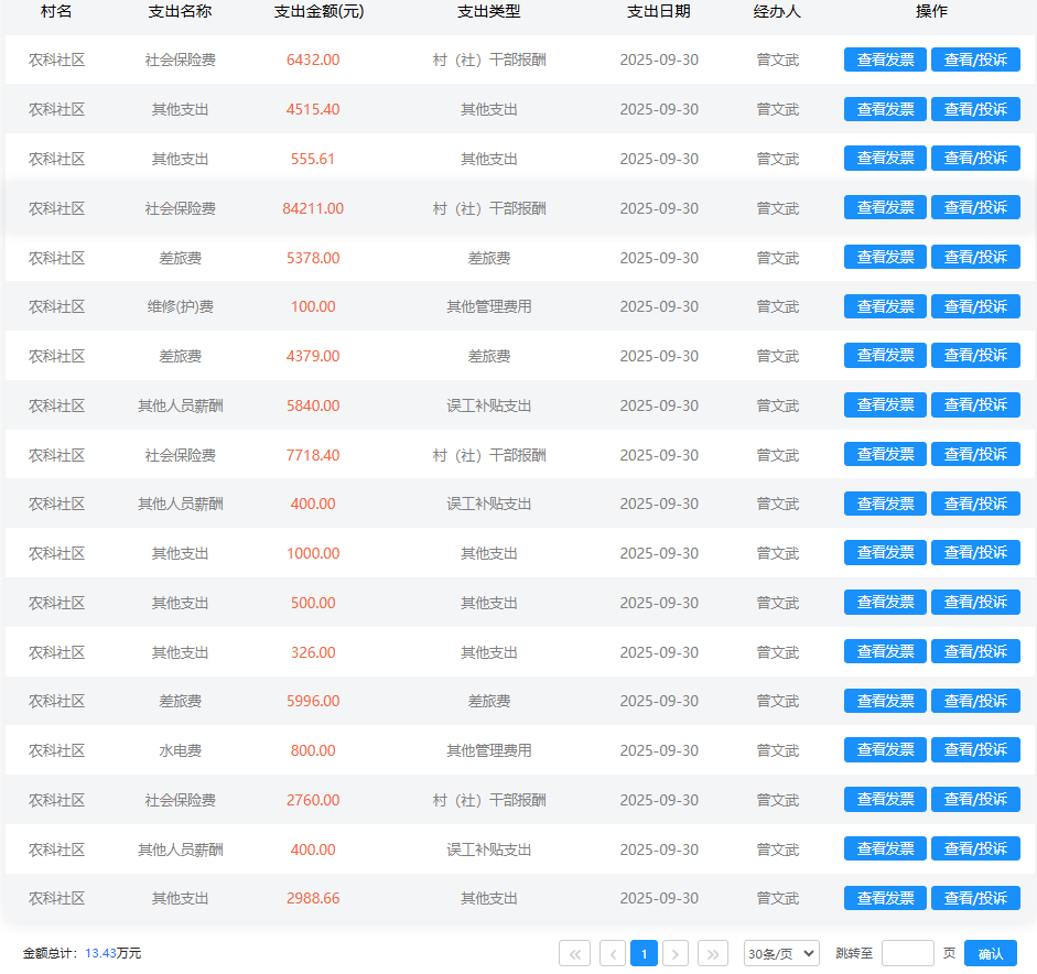 2025年9月农科社区村级财务支出明细