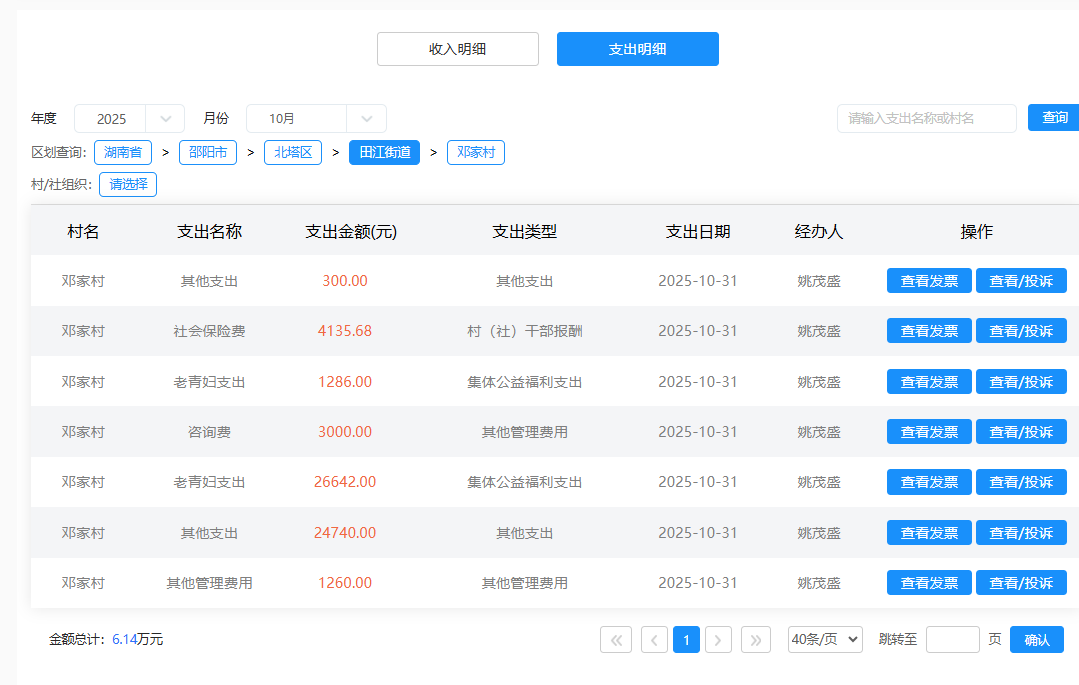 2025年10月邓家社区村级财务支出明细