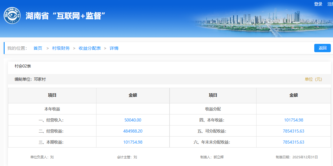 2025年10月邓家社区村级财务收益分配明细