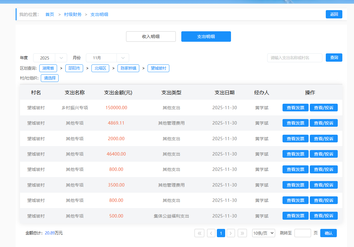2025年11月望城坡村村级财务支出明细