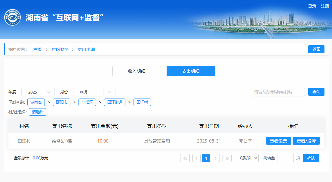 2025年8月田江村村级财务支出明细