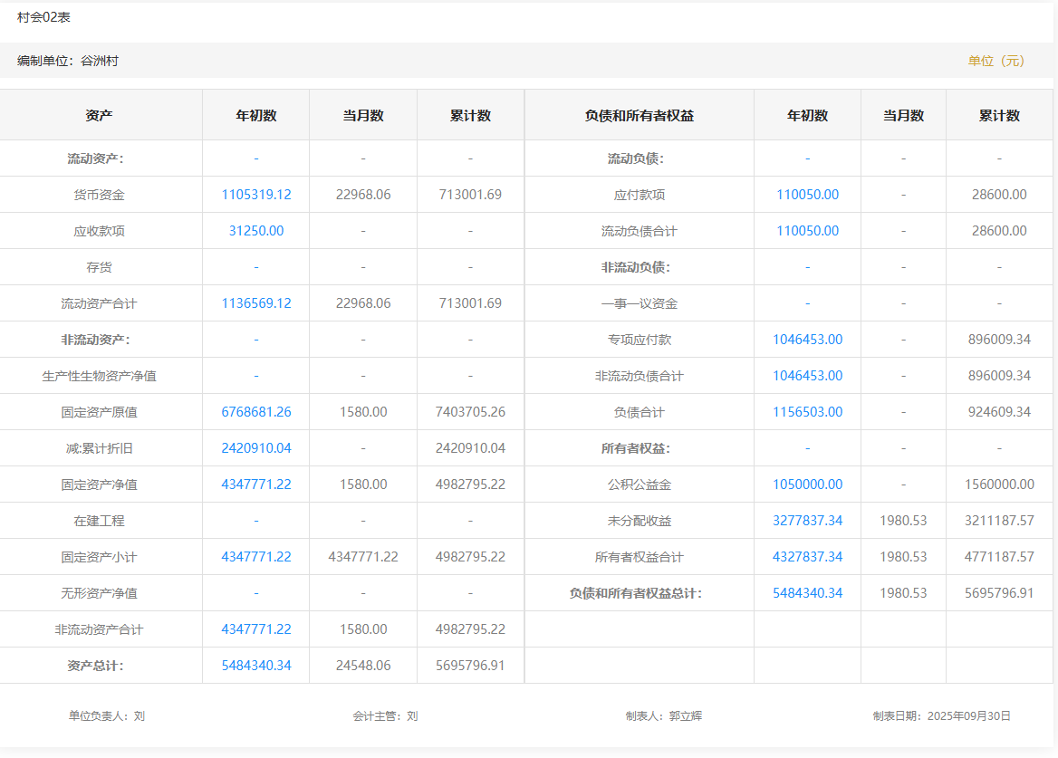 2025年7月谷洲村村级财务资产负债明细