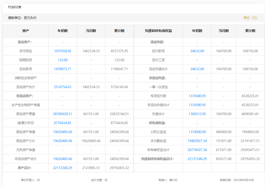 2025年7月茶元头村村级财务资产负债明细
