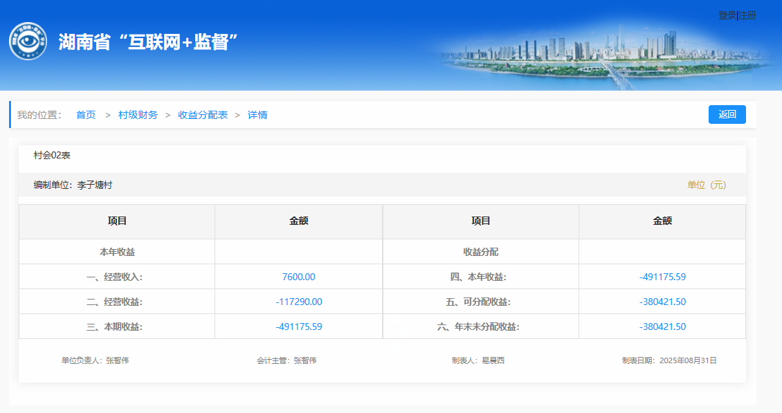 2025年8月李子塘村村级财务收益分配明细