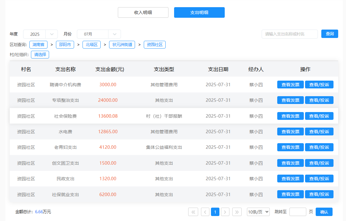2025年7月资园社区村级财务支出明细