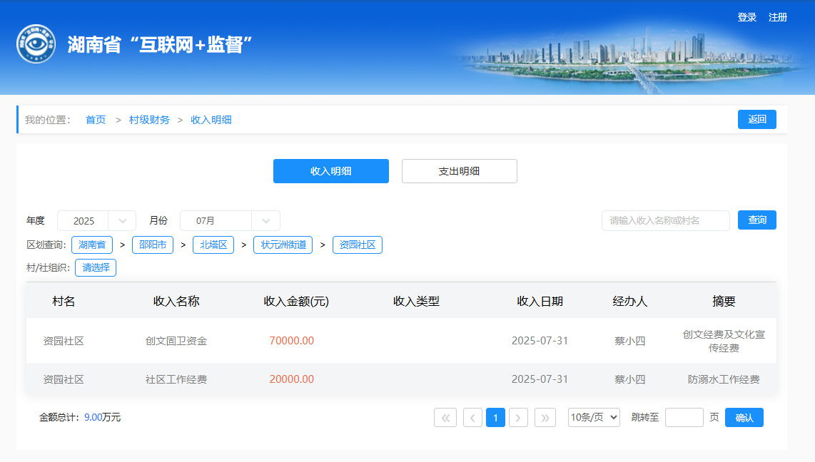 2025年7月资园社区村级财务收入明细