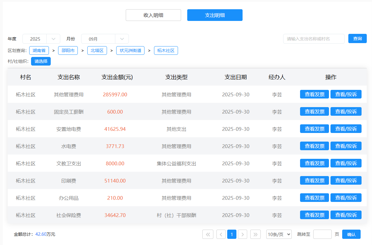 2025年9月柘木社区村级财务支出明细
