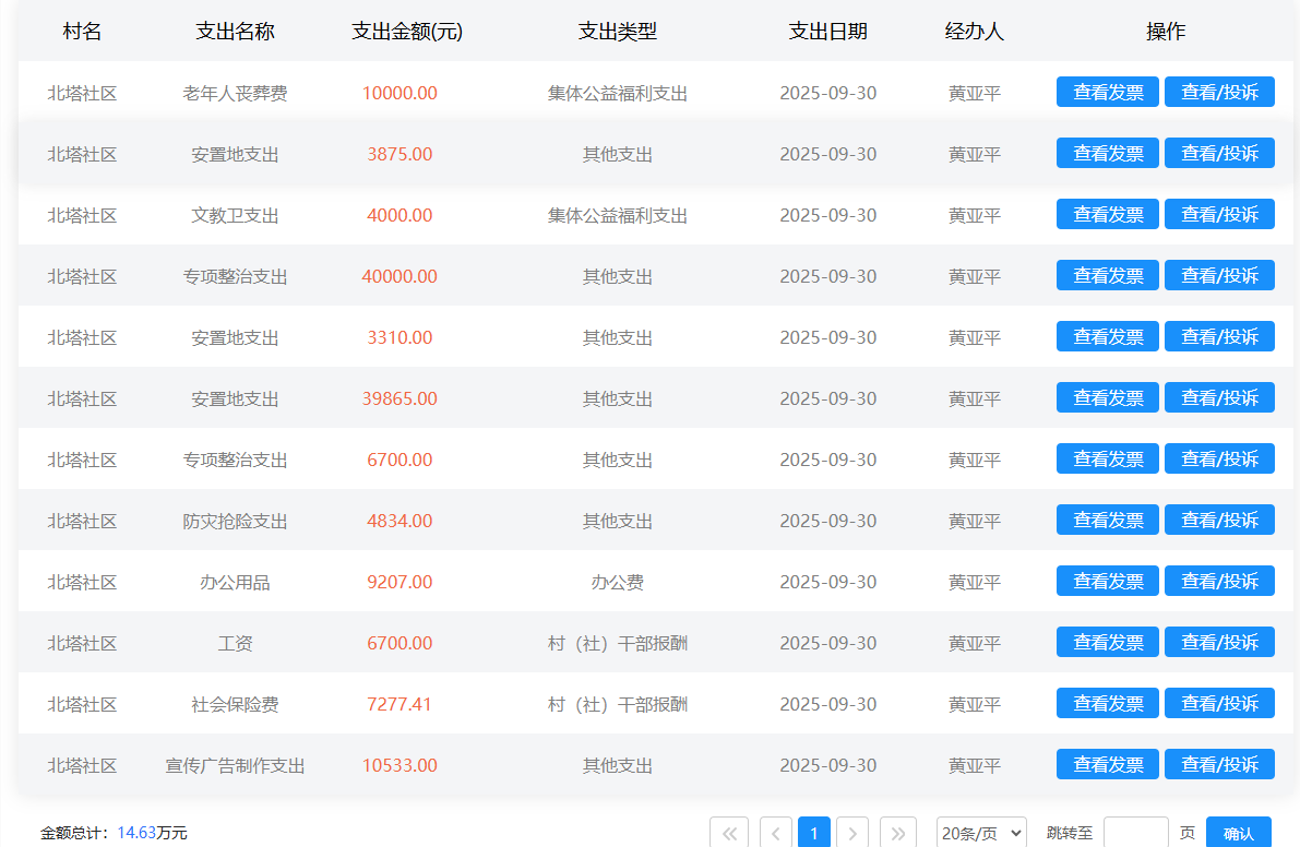 2025年9月北塔社区村级财务支出明细