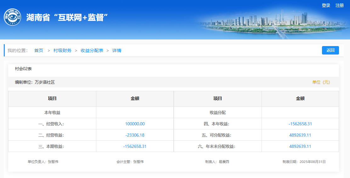 2025年8月万岁社区村级财务收益分配明细