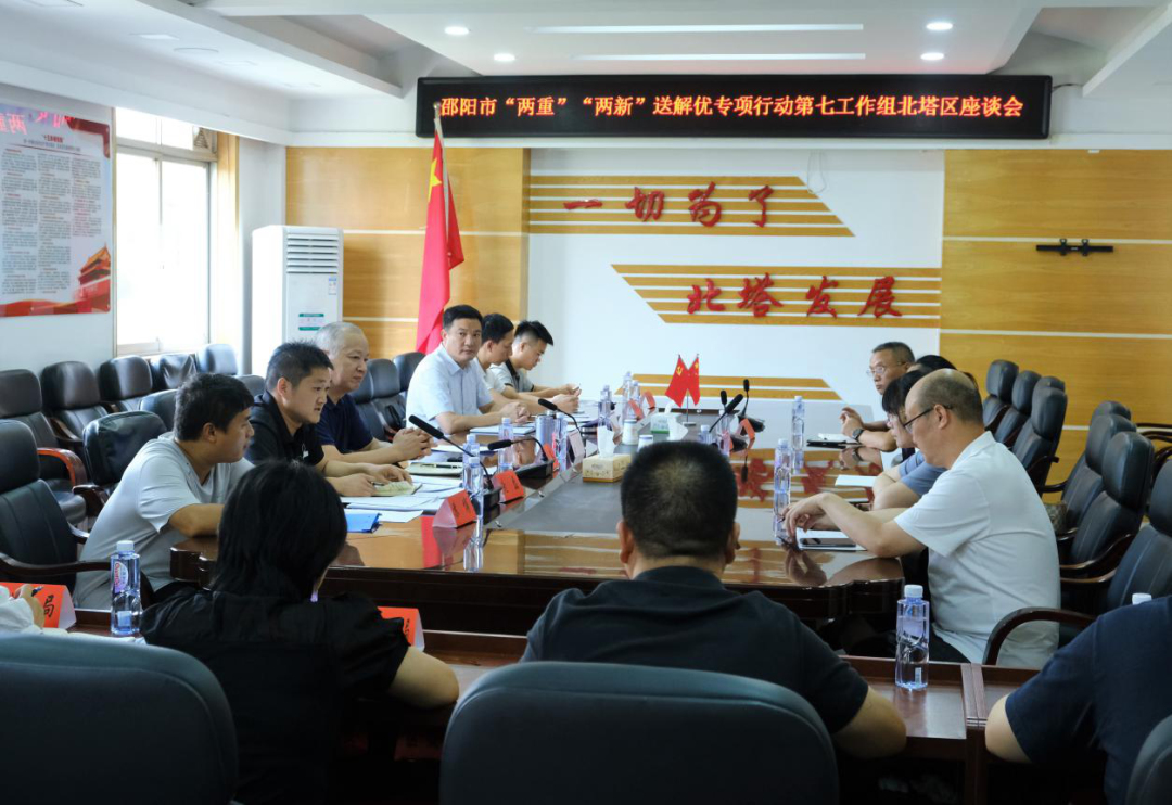 9月9日,邵阳市“两重”“两新”送解优专项行动第七工作组到北塔开展专项调研,深入贯彻党的二十届三中全会精神,推动党中央、国务院和省委、省政府各项政策举措落实落地。市市监局四级调研员曹科文,区委常委、常务副区长王永红,区“两重”“两新”相关部门单位主要负责人和工作组成员,部分企业代表参加。