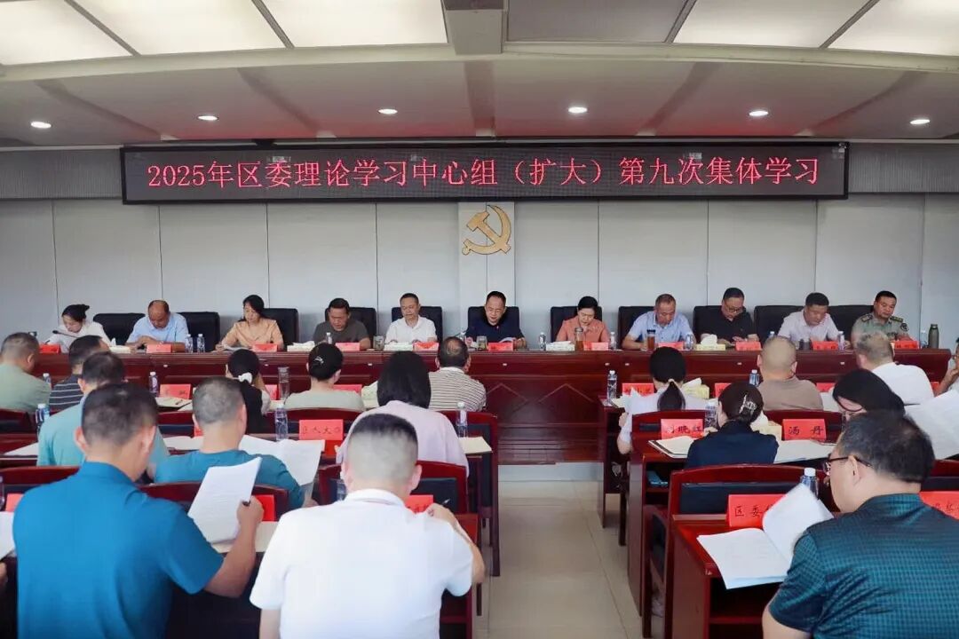 8月26日,区委书记张龚主持召开2025年度区委理论学习中心组(扩大)第九次集体学习会议,深入学习习近平总书记在二十届中央政治局第二十一次集体学习时的重要讲话、关于社会工作的重要论述精神,全面落实党的自我革命各项要求和举措,打好贯彻中央八项规定精神持久战,推动全区新时代社会工作高质量发展。区委理论学习中心组成员,区人大、区政府、区政协班子成员,区人民法院院长、区人民检察院检察长及区直相关单位主要负责人参加会议。