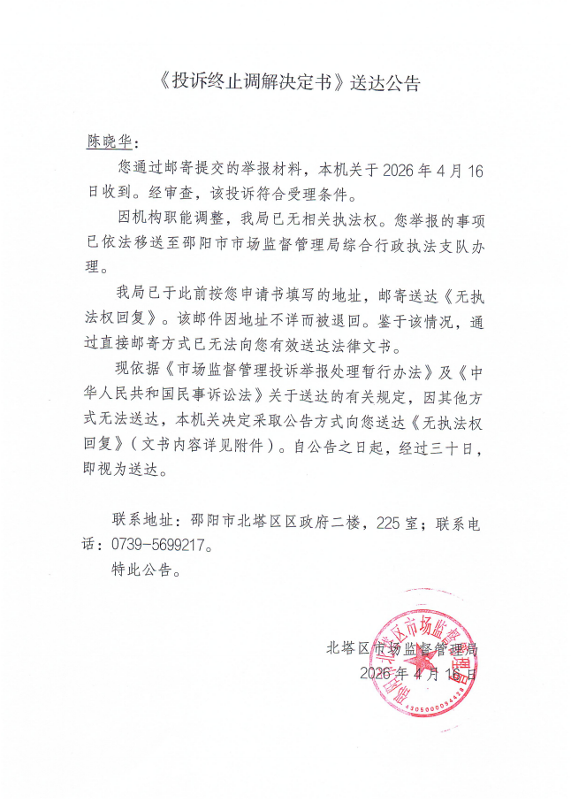 网站标识码:4305110001 地址:邵阳市北塔区人民政府