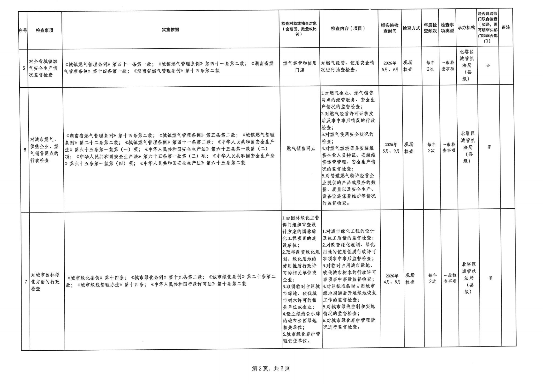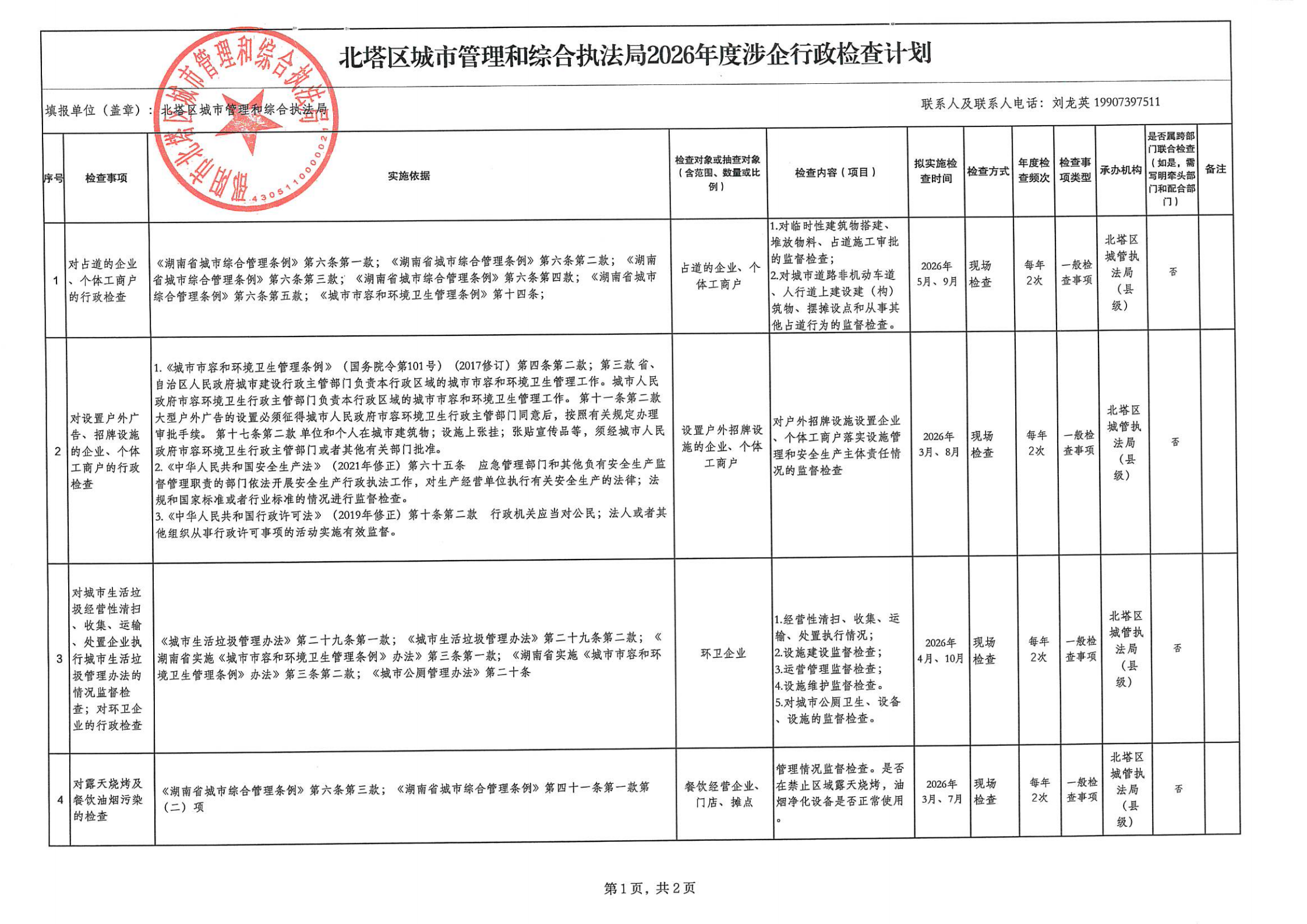 北塔区城市管理和综合执法局2026年度涉企行政检查计划