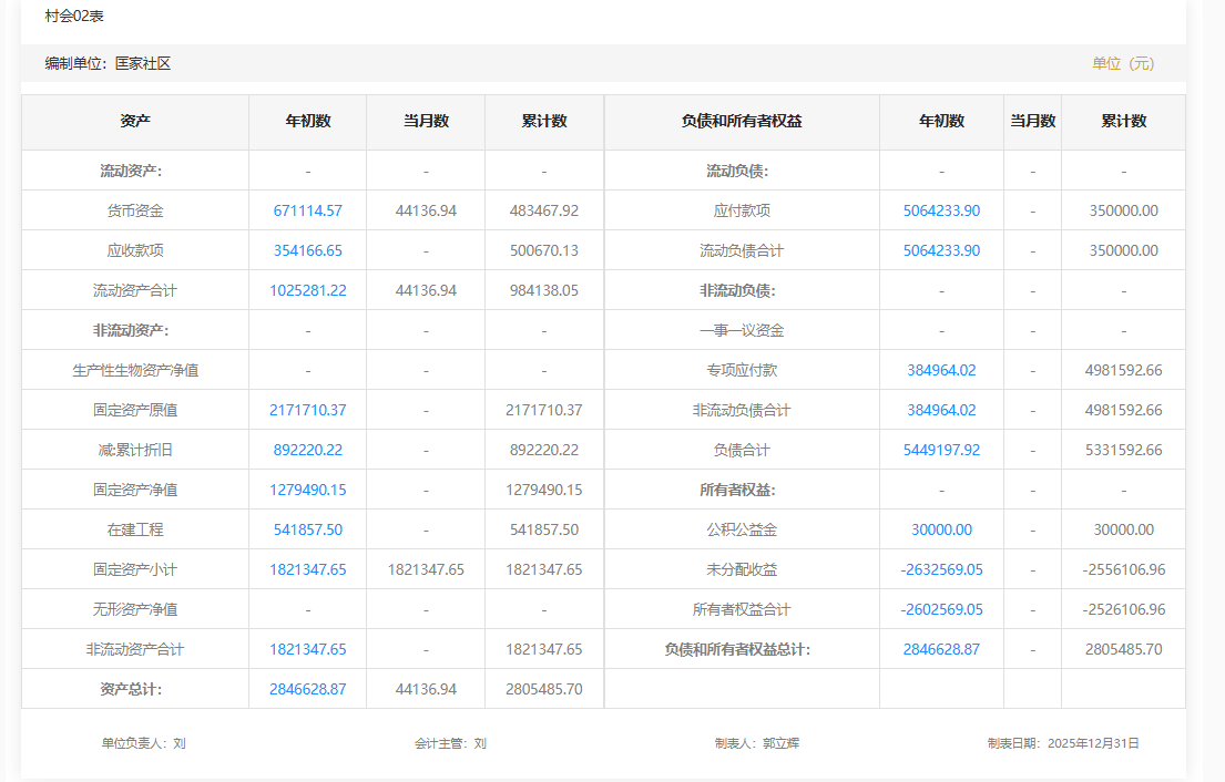 2025年10月匡家社区村级财务资产负债明细